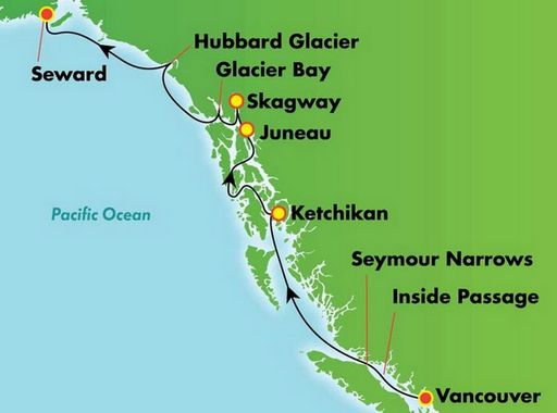 Start 9 lipca 2013 po południu z Vancouver i koniec 16 lipca rano w Seward skąd transport lądowy na lotnisko w Anchorage.